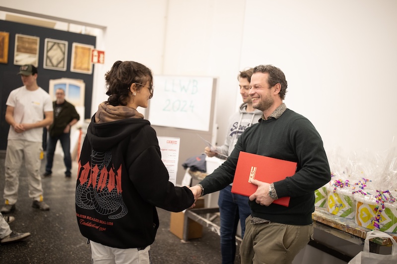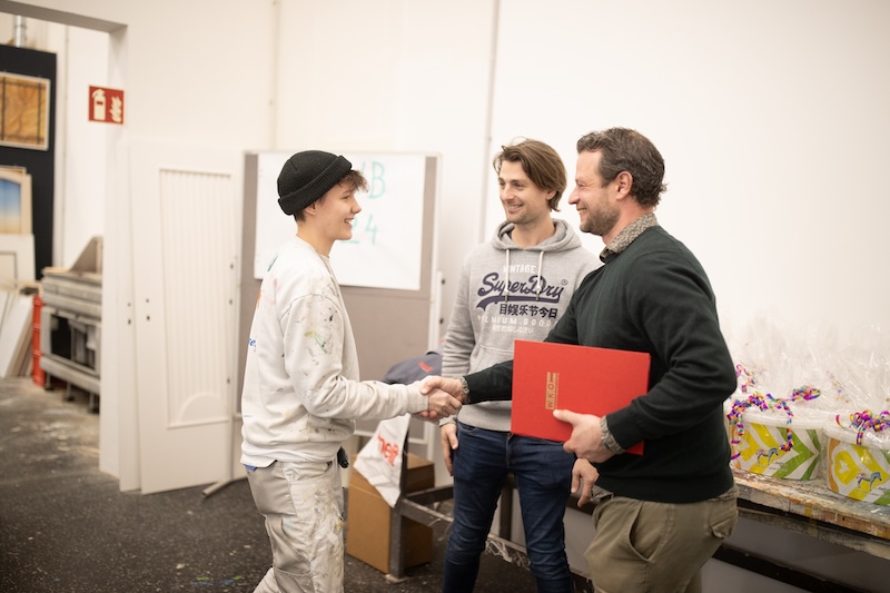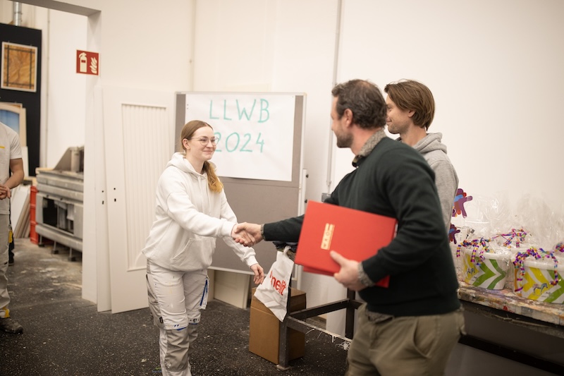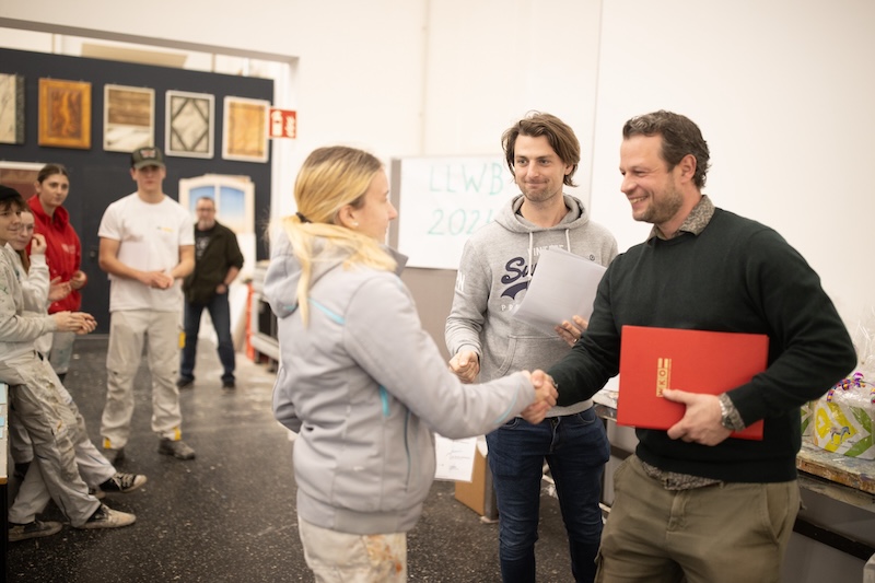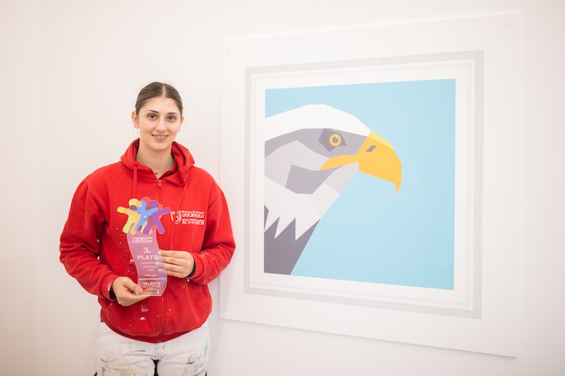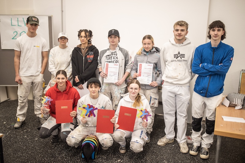 Spannung und ganz viele Pinselstriche: Die Berufsgruppe der Maler und Beschichtungstechniker veranstaltet jedes Jahr einen Lehrlingswettbewerb für Lehrlinge im dritten Lehrjahr. Am Ende strahlte Juliette Kristler. Die 19-jährige bewies Nervenstärke sowie Präzision und holte sich mit ihrer herausragenden Leistung und ihrem Gespür für Farben und Formen den ersten Platz.